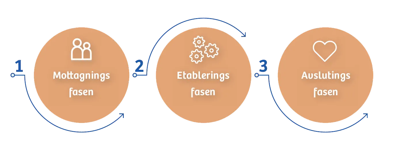Olika insatser behövs för olika individer. För att åskådliggöra Kronangruppens samlade erfarenhet med våldsutsatta tänker vi placeringsprocessen i faser: